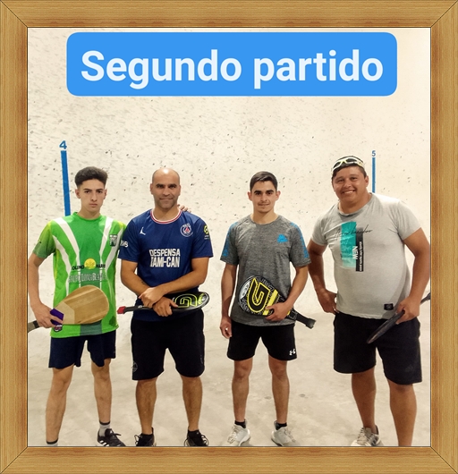 Primer partido de la tarde...Simón Garay-Ariel EL REY DE LAS DOS PAREDES contra Franco LA FURIA Krenz-Santi EL PRÍNCIPE Artoni. Buen partido disputado, muy parejo y con un justo resultado, uno para cada lado.