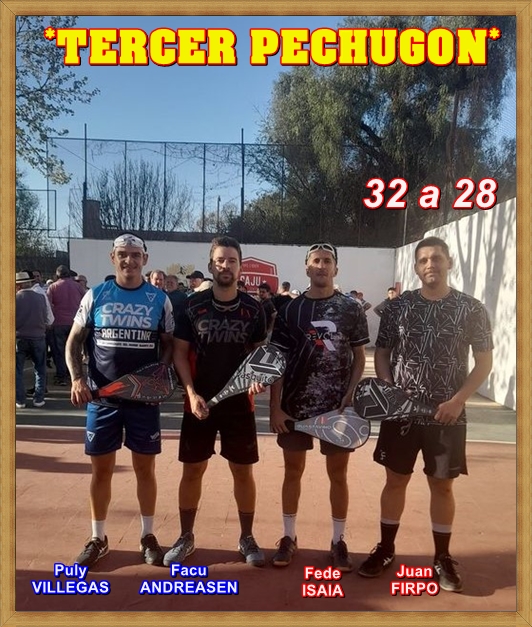 …Ahora si el trìo se formalizò en su juego, tapando los huecos entregados en el anterior pechugon, esta vez ganaron ajustados contra los Campeones Mundiales: Facundo ANDREASEN - Puly VILLEGAS,..Triunfando sobre ellos por un score de 25 a 22.