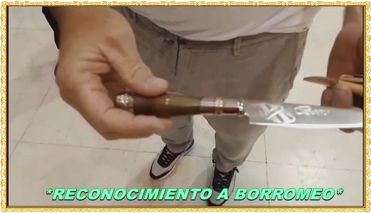 …Minutos antes se realizò entrega de presente en menciòn a Javier GUARROCHENA “Borromeo” y “El Toro” un super aficionado de años de este reducto coqueto,..Ambos recibieron sendos cuchillos grabados con su respectiva vaina trabajada en cuero.