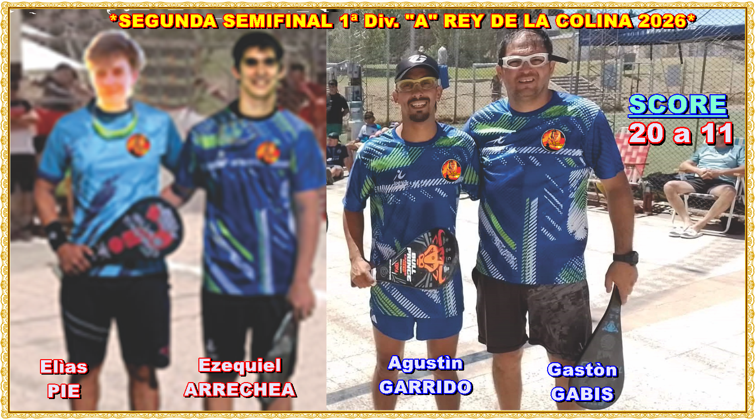 …Ezequiel ARRECHEA - Elías PIE:…Fueron dignos Sub Campeones, fue aquel equipo competidor de 1ª Div. “A” élite que, a pesar de no obtener el título máximo, demostró una excelencia, rendimiento y juego memorable, a menudo perdiendo en instancias decisivas o por márgenes mínimos, ganándose el reconocimiento histórico, en nuestro *REY DE LA COLINA 2026*.