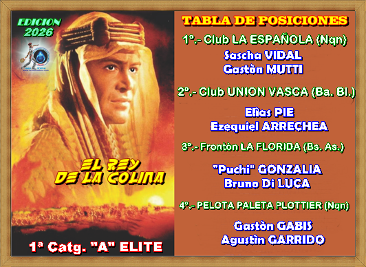 …Nuestra primera división élite representa la cúspide del rendimiento pelotari del Frontón Argentino, apareado por la más veloz del mundo “la negrita”, conformada por los mejores equipos, jugadores o individuos en su disciplina, caracterizada por un alto nivel de exigencia, profesionalismo y competitividad máxima.