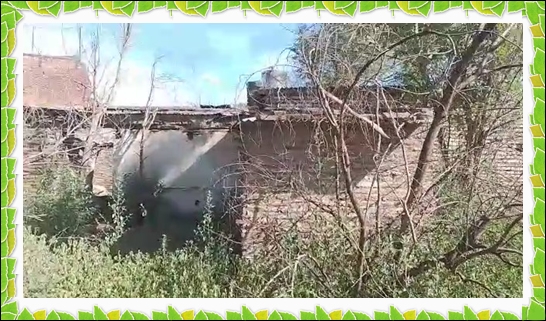 ...Las rajas de sus juntas de ladrillos, surcadas, como profundas cicatrices.... han sido socavadas y hoy arraigan rorros polluelos de torcazas grises, y bullangueros gorriones sarmienteros.