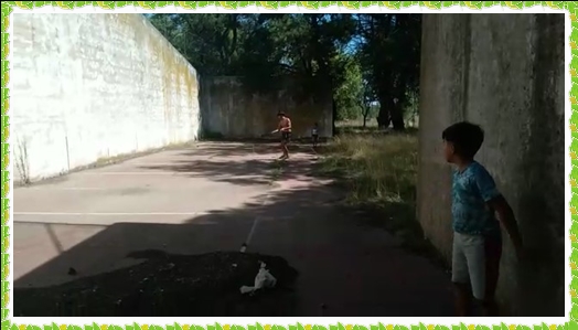 ...DE PRONTO!!!,..Pareciere escuchar un sonido acostumbrado, trato de agudizar los sentidos, mi visiòn se afirma,..Dentro de la copa de los àrboles veo que surge algo conocido para mis años pelotaris,..Como emerguiendo como lava de volcàn se las ve,..La gloriosas “peinetas” de un FRONTON ARGENTINO.