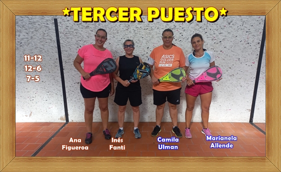 …TRIUNFO por el tercer puesto Ana Inés FIGUEROA - Irene FANTI(Suárez),…Le ganaron a Marianela ALLENDE - Camila ULMAN ( Suárez),..Por un score de: 11 a 12 – 12 a 6 – 7 a 5.