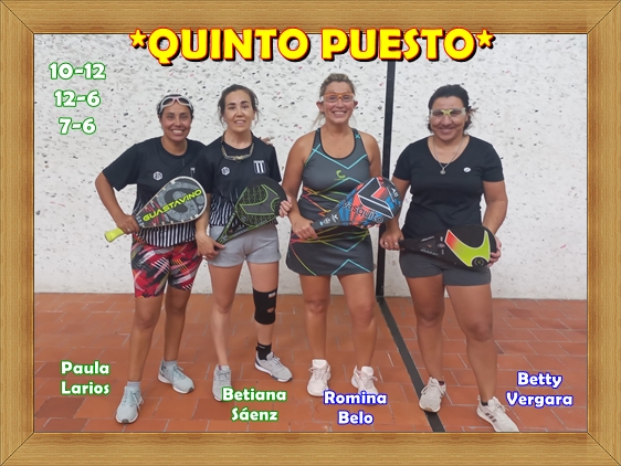 …TRIUNFO por el quinto puesto Romina BELO - Betty VERGARA (Suárez ),…Le ganaron a Paula LARIOS (Olavarría )Betiana SAENZ VALENTE(Laprida ),..Por un score de: 10 a12 – 12 a 6 – 7 a 6.