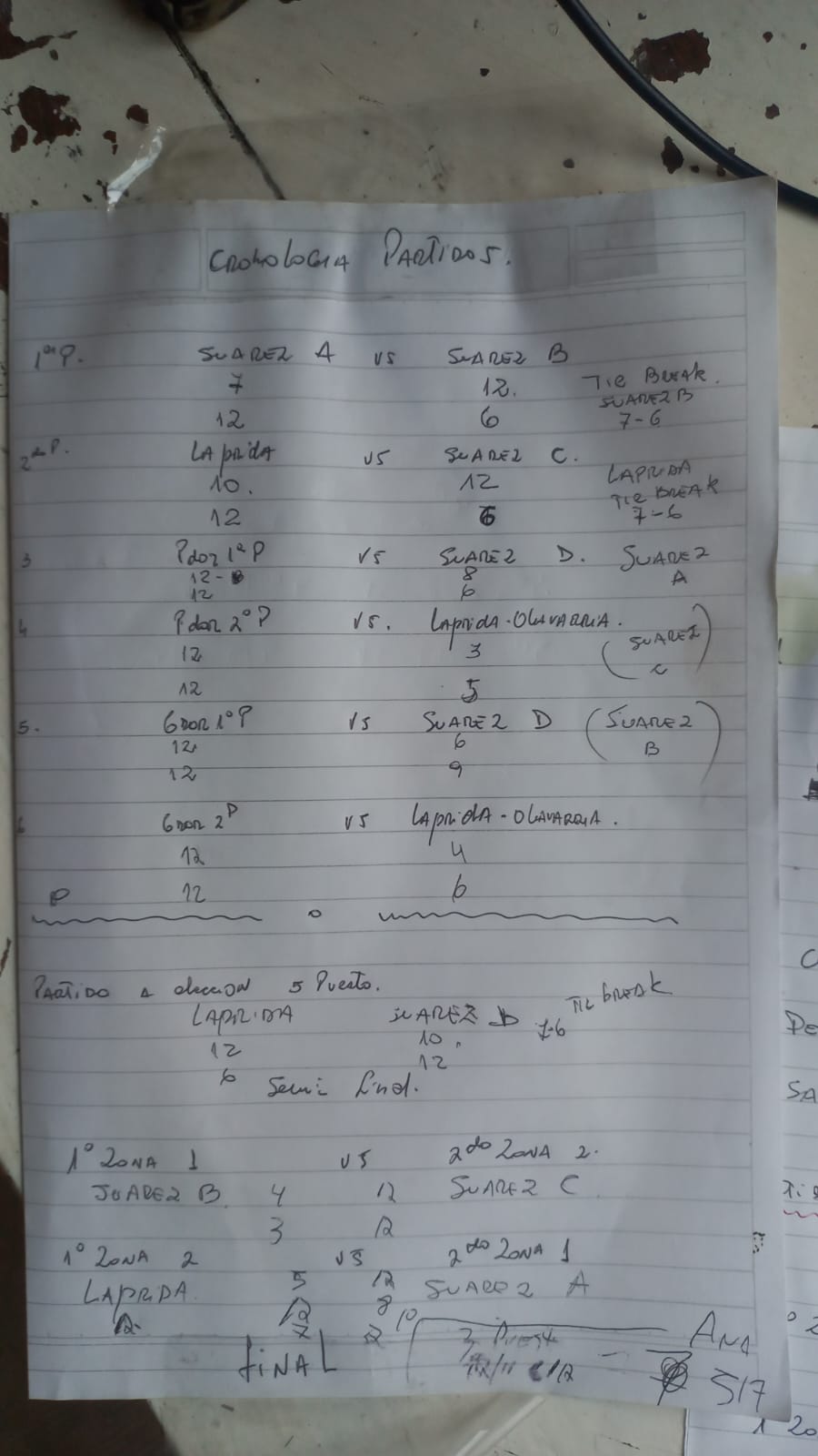 …Triunfo del binomio de LAPRIDA, por: 8 a 12 – 12 a 10 – 7 a 6