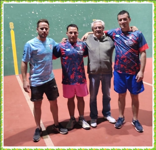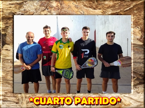 ...Y llegaba el momento más esperado, el momento en que el cielo se paraliza y los dioses se sientan para ver jugar estos cuatro reyes del frontón. Juan Firpo-Federico Isaías contra Santiago Andreasen-Facundo Andreasen. Un espectáculo de otro planeta, un partido más que electrizante con jugadores dotados de virtudes interplanetarias. El resultado quedo empatado, uno para cada lado pero el frontón quedó empachado de tantos lujos y tantas técnicas al momento de definir un tanto. Aplausos para ellos que hacen que este deporte sea cada día más bello.