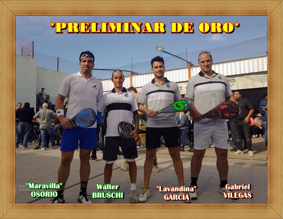 Preliminar de Oro... Guillermo Osorio (derecha)-Walter EL VIRREY Bruschi enfrentan a Lavandina Garcia-Gabriel Villegas. Contundente doblete de la pareja Osorio-Bruschi que con una magnífica actuación del VIRREY y una estupenda performance del Guille se adjudicaban el doblete y todos los aplausos de la gente.