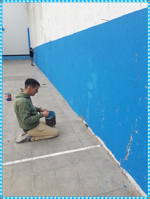 …Pintamos las paredes, las maderas,…El piso lo pinto el presi y las líneas un chico de acá que trabaja en el tema de dibujos. Lo que sea dibujar en la pared él lo pinta.