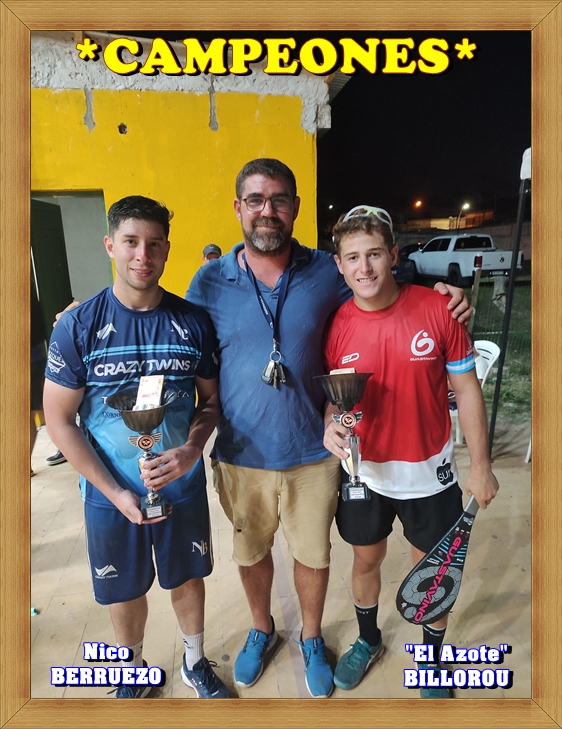 Acá esta esta yunta que de apoco.se fue afirmando para ganarle una final a dos jugadores co una trayectoria  implacable  juan firpo y Fernández,,,felicitaciones campeones Nico Berruezo Y MATEO BILLOROU!!!HUIDOBRO.