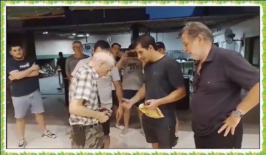 …Minutos antes se realizò entrega de presente en menciòn a Javier GUARROCHENA “Borromeo” y “El Toro” un super aficionado de años de este reducto coqueto,..Ambos recibieron sendos cuchillos grabados con su respectiva vaina trabajada en cuero.