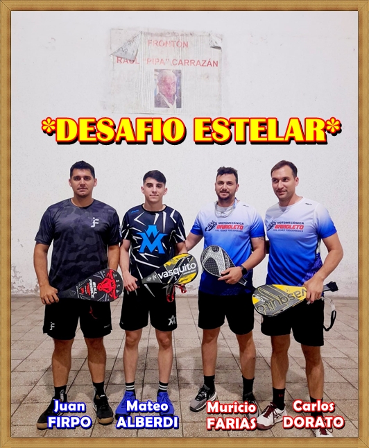 Solo palabras de agradecimiento a todos los que hicieron posible que este  deporte de Pelota Paleta siga vigente en nuestra ciudad .  ACTORES principales JUAN FIRPO , MATEO ALBERDI,  CARLOS DORATO,  Mauricio Farias , Luciano Reynoso ,TOBIAS ZAPATA Joaquín Vanegas ,OSCAR ARIZTIZABAL,  NESTY PIEGAIO, Aguss Garibaldi ,RAFAEL CHIARA , LAUTI SILVA  ...