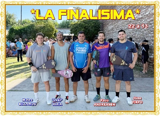 3º).- y la final, Facundo ANDREASEN - Juan FIRPO, le ganaron 22 a 15 a Federico ISAÍA - Mateo BILLOROU, en un apabullante resultado, demostrando así “FRIRPO – ANDREASEN”, en esta tarde 5 bazas por encima de su rival.