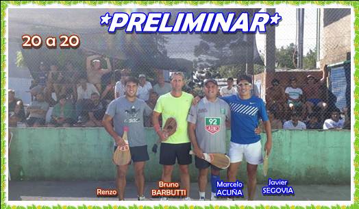 …..El triangular primer partido gano Marcelo y Gabi 20 a 17 contra Sánchez y Gastón….