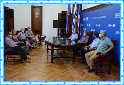 El Intendente de Colonia Doctor Carlos Moreira Reisch, recibió hoy al Presidente de la Federación Internacional de Pelota Vasca Xavier Cazaubon, quien llegó acompañado por Marcelo Filipeli Presidente de la Federación Uruguaya de Pelota y otras autoridades, manteniendo una reunión de trabajo junto a Directores de la Intendencia, referida a la reactivación del Frontón Real de San Carlos.
