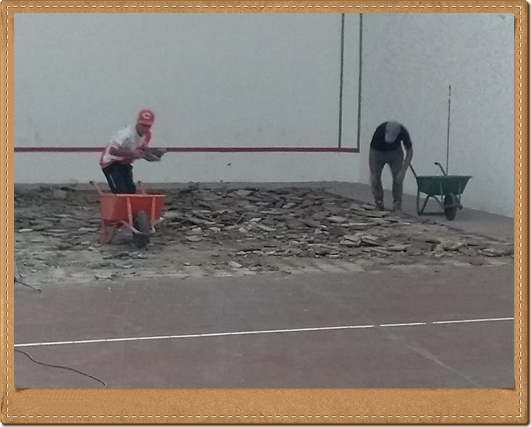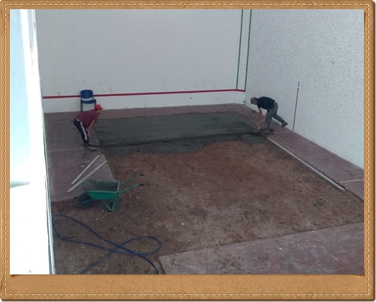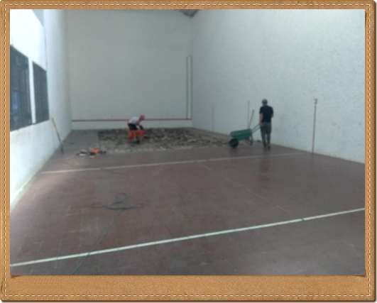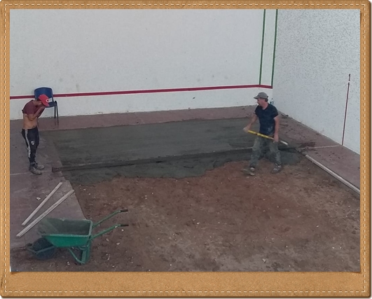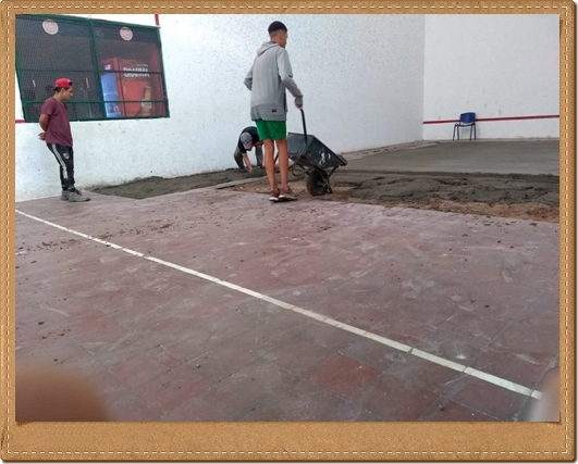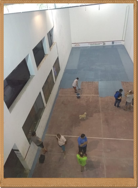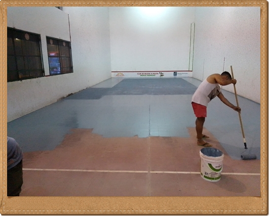 Hoy le dimos la primera mano al piso de la cancha con un hermoso color, colocamos la puerta reacondicionada del quincho además de varias tareas de mantenimiento.q hicimos durante la tarde.