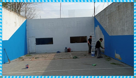 …Pintamos las paredes, las maderas,…El piso lo pinto el presi y las líneas un chico de acá que trabaja en el tema de dibujos. Lo que sea dibujar en la pared él lo pinta.