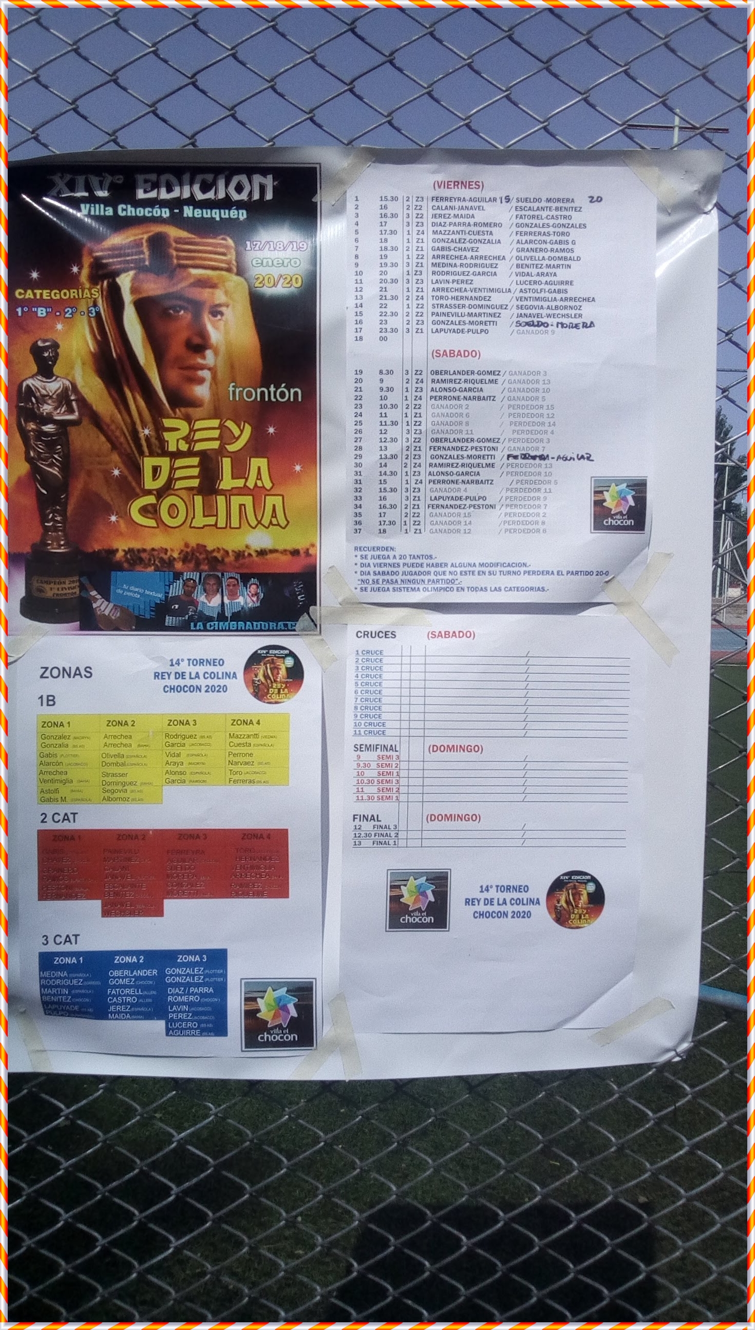 El año 20/20 del REY DE LA COLINA, iba llegando a su fin, y faltaba poco para que se definan los semifinalistas, estábamos ya en los cruces. El peculiar sistema de clasificación pergeñado por Gastón GABIS, implica que varias parejas en curso tienen algún grado de relevancia para definir a la lista definitiva de loa cuatro últimos. Este post viene a hacer un repaso minucioso de lo que dice la letra fría de la ley REY DE LA COLINA, para despejar dudas y echar por tierra las afirmaciones que se hacen sin chequear. Pero lo llamativo de la categoría fue la paridad tremenda con que se presentaron cada binomio, e inclusive cada pechugón se vio reflejado en el tanteador.